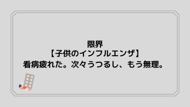 限界【子供のインフルエンザ】看病疲れた。次々うつるし、もう無理。